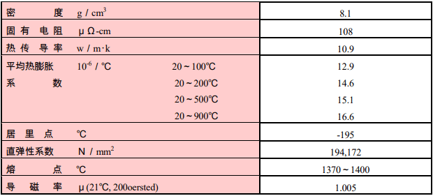 NAS 825 對于氧化性酸,以及非氧化性酸即硝酸;磷酸等而言其耐腐蝕性非常良好,再者,對含有氯化物的溶液;海水中的點蝕以及應力腐蝕都具有良好的耐腐蝕性。此外,和具有穩定型的不銹鋼相同,對晶間腐蝕也具有極其良好的耐腐蝕性。